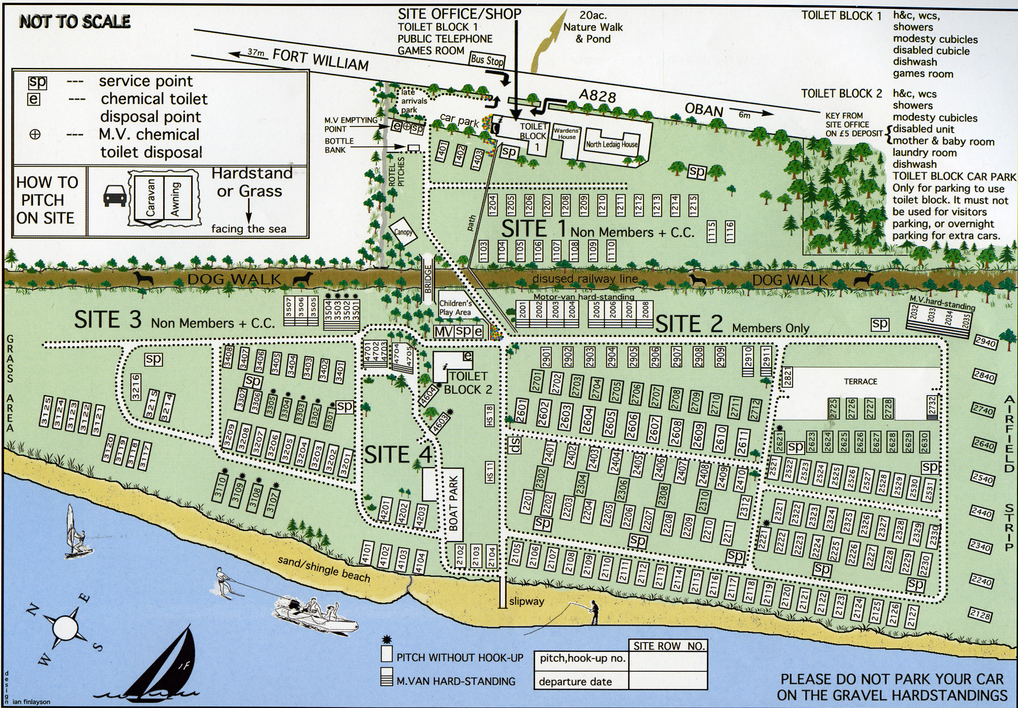 There are two toilet blocks with W.C's, Showers, W.H.B and modesty cubicles. We also have a separate disabled room which will take all forms of disabled transport (wheelchairs & ride-on scooters) and Parent & Baby room with bath and baby-changing facilities. There is also an information room, full laundrette, dishwash & veg preparation areas.